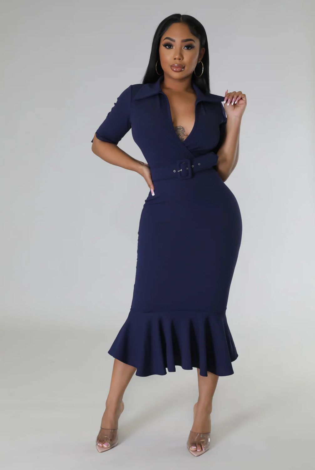 Speak The Truth Midi Dress - Navy